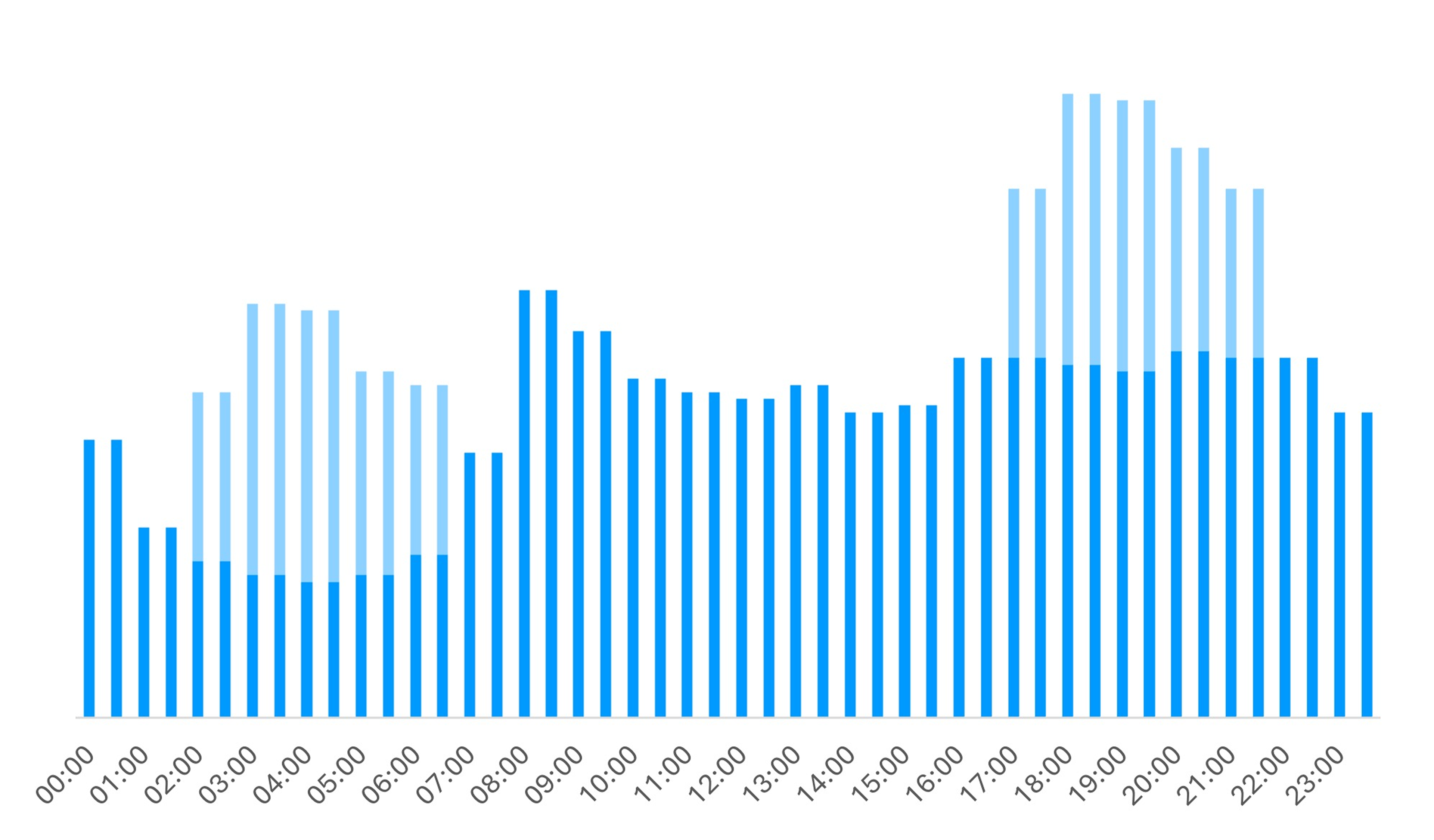 If you were able to capture the four cheapest periods each day – which is how long it takes to charge a typical battery – you would be purchasing electricity for an average of just 15 p / kWh. Figure 1 shows this concept of ‘load shifting’ – charging your battery during the cheapest hours of the day, and using that stored electricity when electricity prices rise, allowing you to cut your average cost per unit.